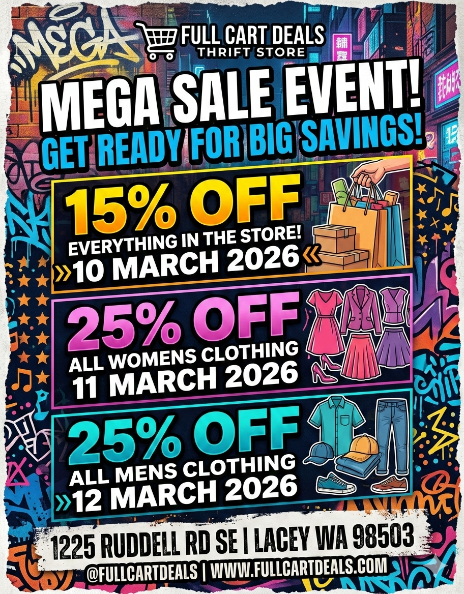 At Full Cart Deals in Lacey, we’re more than just a thrift store – we’re a place where people come to save money, find great pieces, and feel welcome.